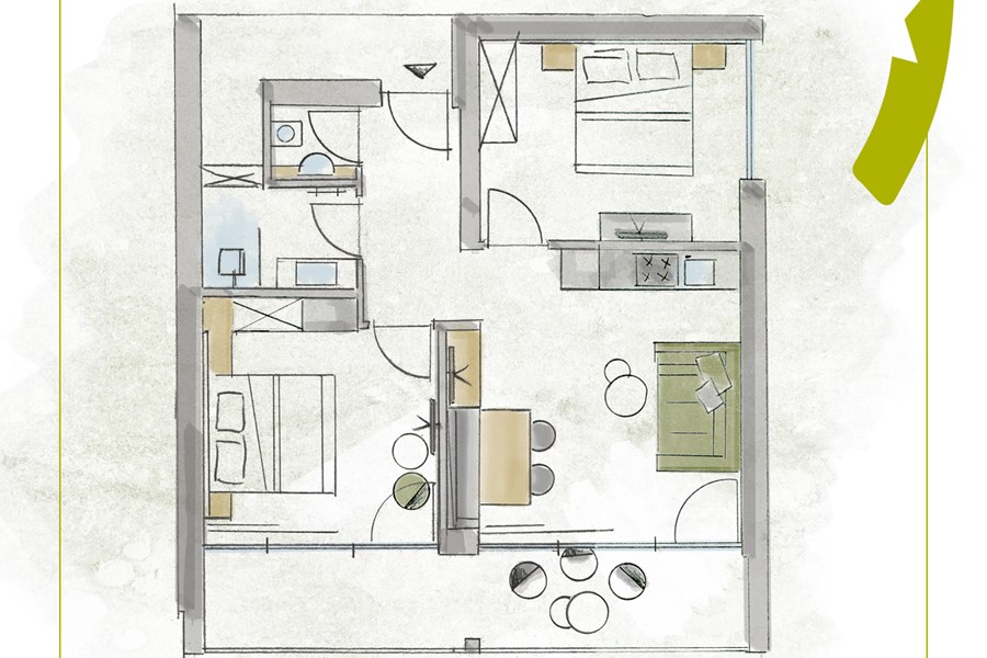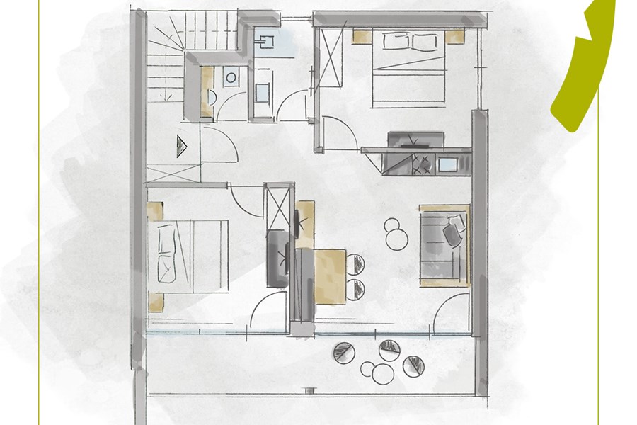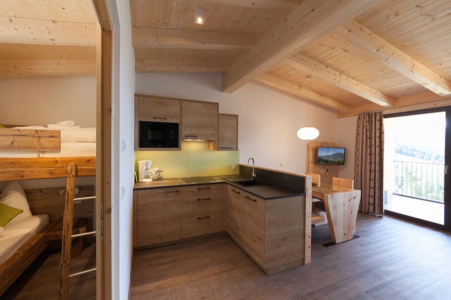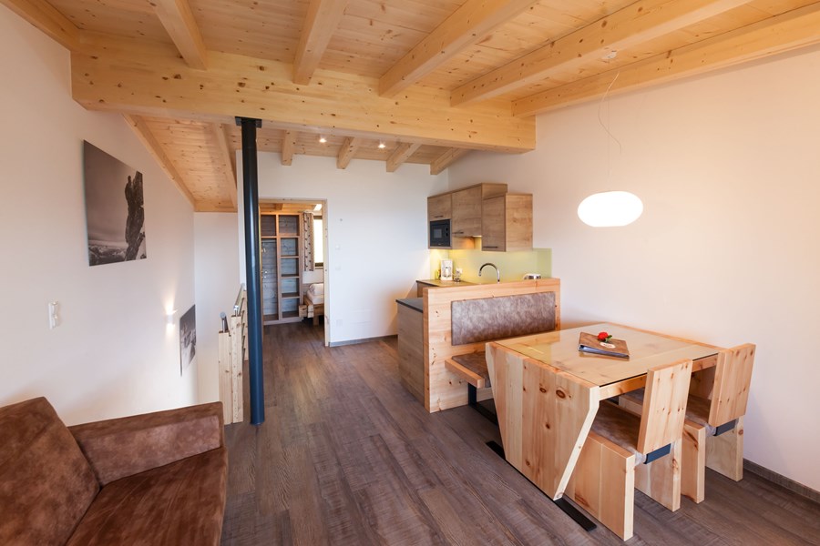 - 2 double rooms, traditional Tyrolean “stube” made of matured timber with sofa bed
