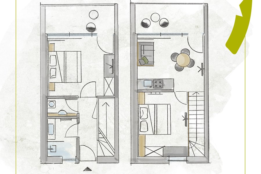 - 2 double rooms, 1 comfy sofa bed in the living area with solid wood table