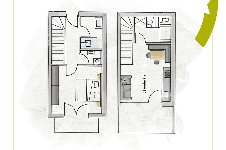 - 1 double room, 1 room with rustic bunk beds, comfy sofa bed